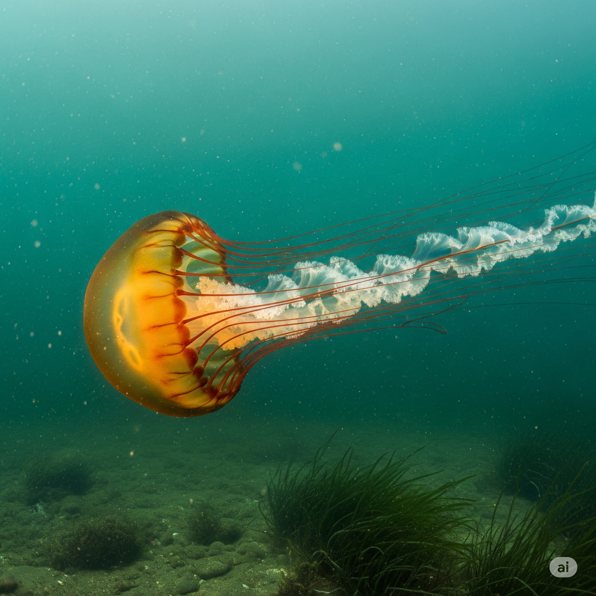 Lion's Mane Jellyfish (Cyanea capillata): This is the largest jellyfish in the world and is particularly common in the cooler waters of the North Sea and the Irish Sea, especially in late summer and autumn. It is far less common in the warmer Mediterranean.