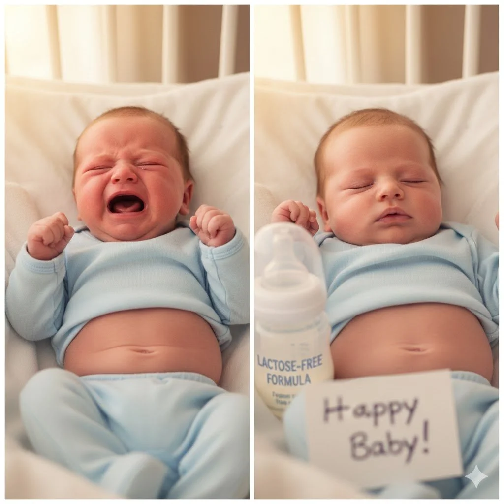 These symptoms typically occur after ingestion of breast milk or standard infant formula (both of which will contain lactose).